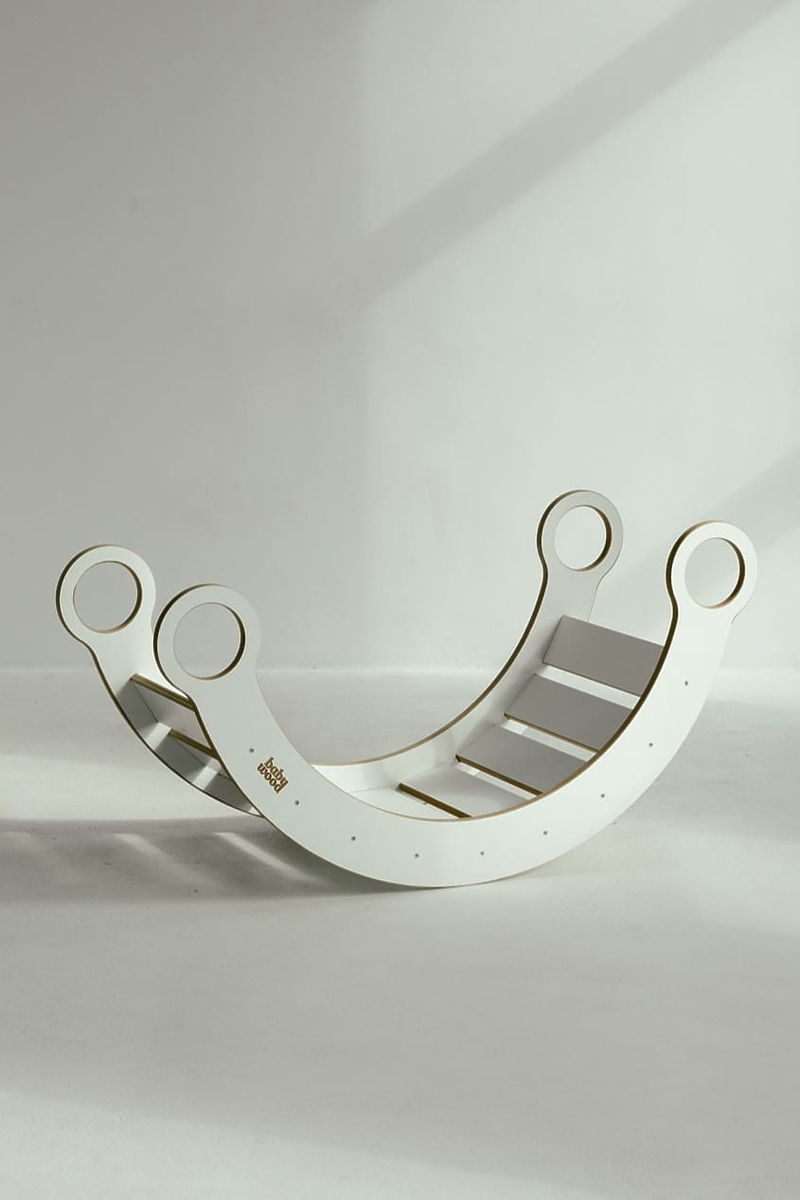 Banaby.hr » Montessori / Montessori ljuljačke / Drvena Montessori ljuljačka s toboganom/penjačkom stijenom L - bijela