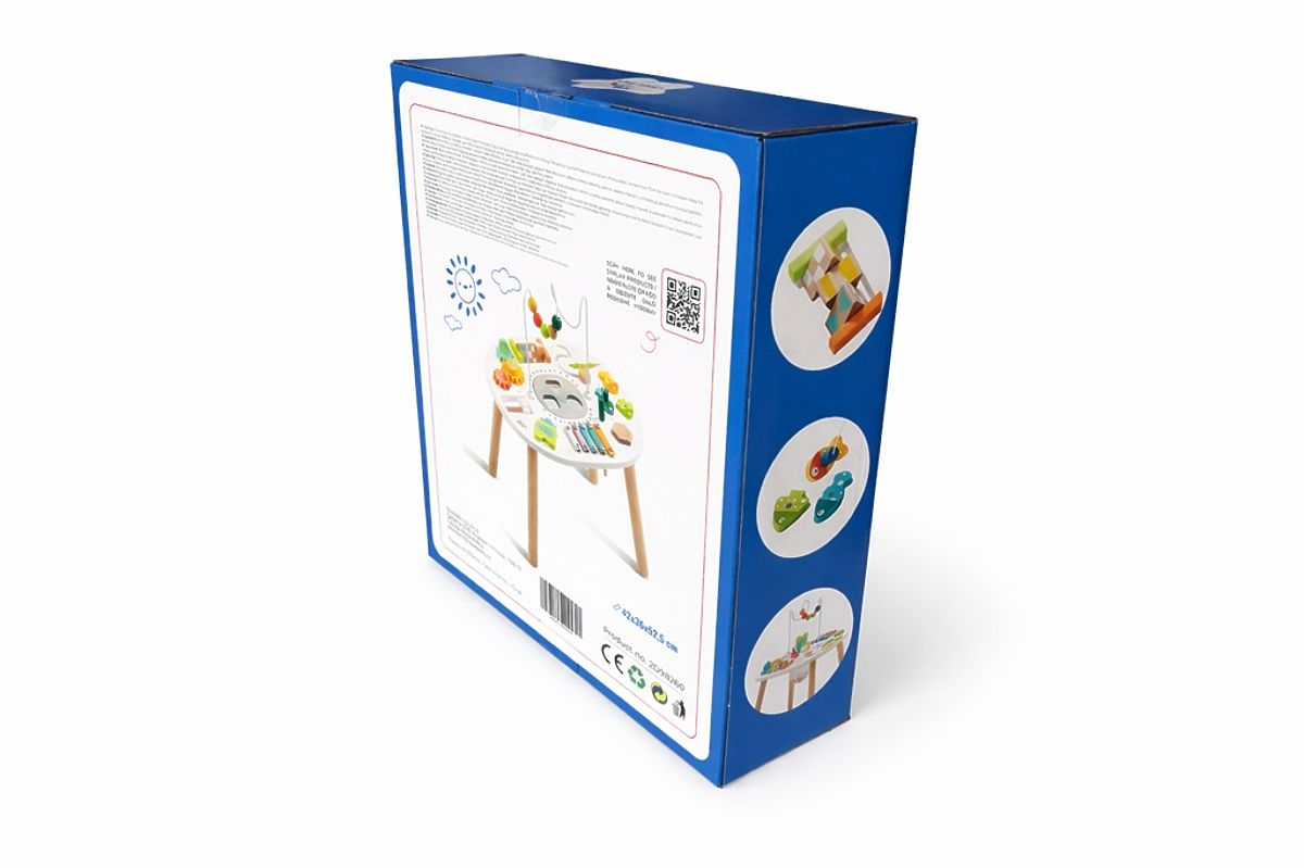 Otkrijte čaroliju višenamjenskog motoričkog stola koji djeci nudi beskrajne mogućnosti istraživanja. Ovaj aktivni stol dizajniran je za razvoj osjetila, motorike i kreativnosti mališana, a istovremeno ih dugoročno zabavlja. Na njemu će pronaći sve što male ruke vole - labirint s perlicama, umetanje oblika, ksilofon, zupčanike, magnezijske ribice i još mnogo toga.