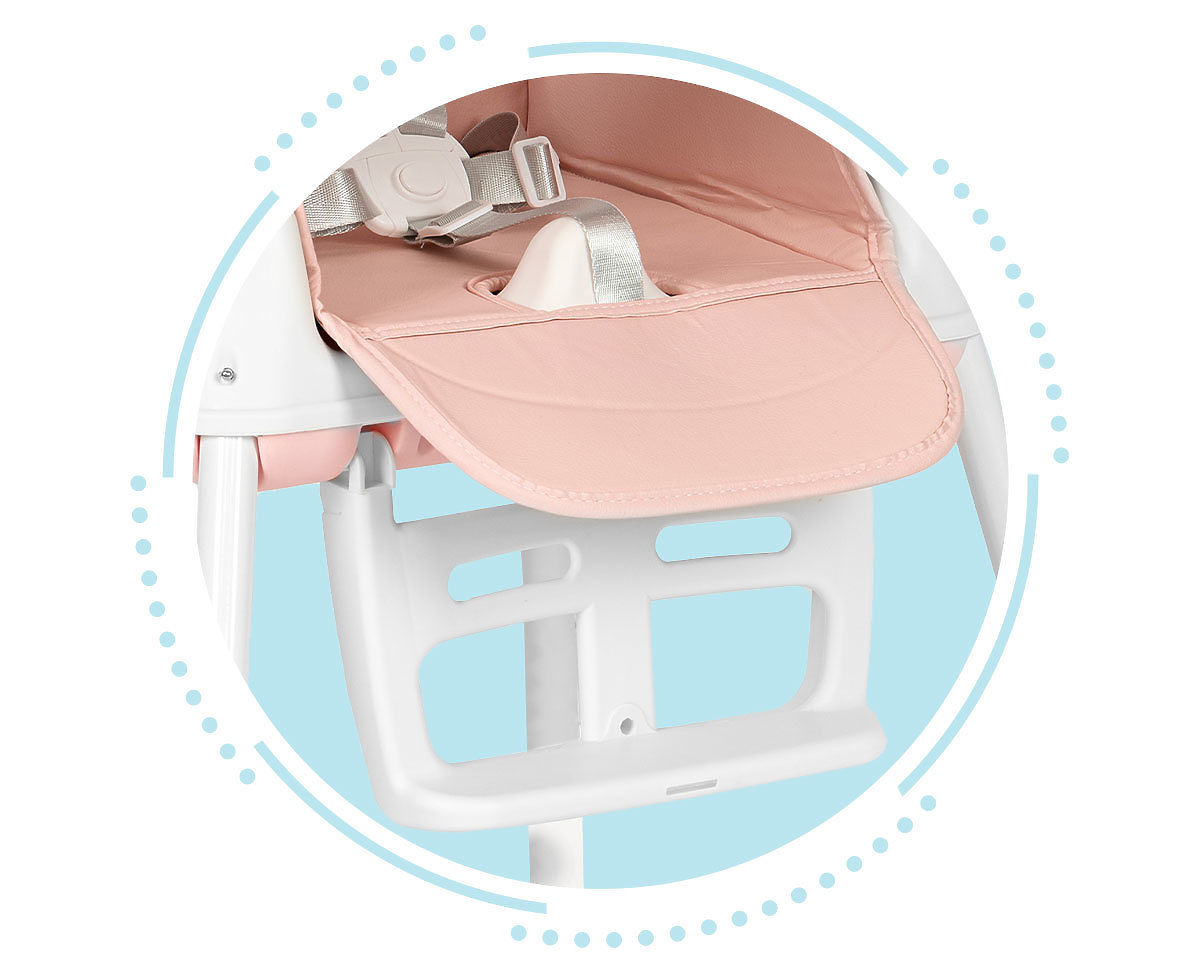 POTPUNA UDOBNOSTPladanj ima podesivu udaljenost od naslona, dovoljno je koristiti polugu koja se nalazi na njegovoj donjoj strani i pomaknuti ga. Njegova prednost su dva sloja i profilirani rubovi koji sprječavaju pad hrane na pod.