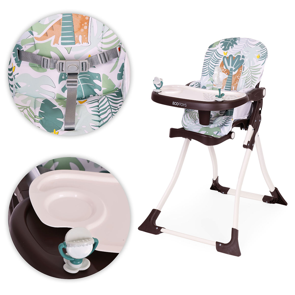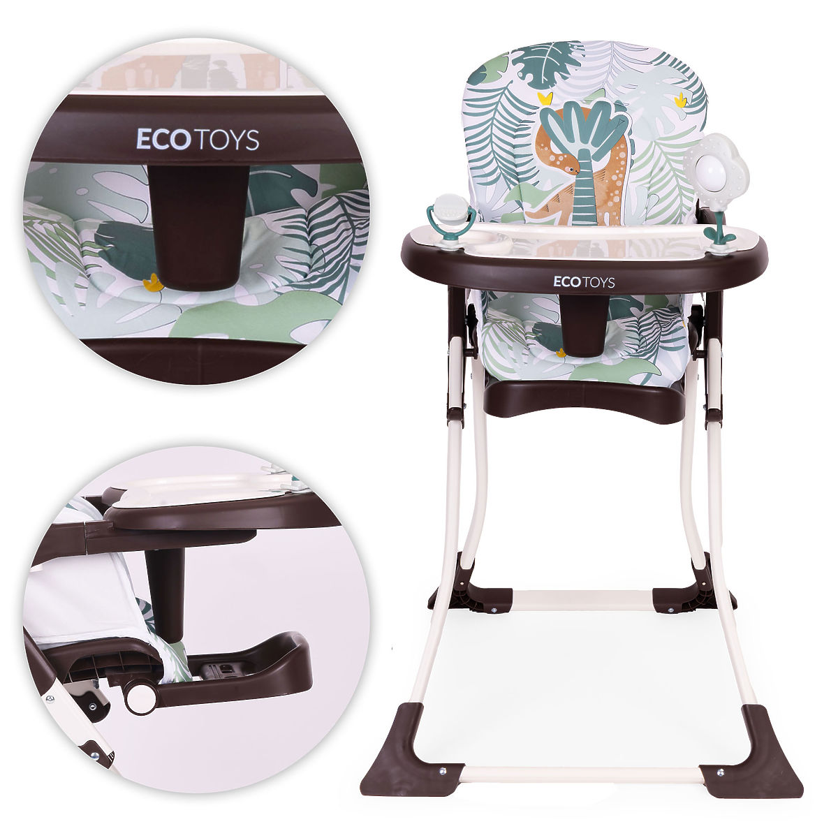 FUNKCIONALNOST U SVAKOM DETALJUDvoslojni pladanj s mogućnošću podešavanja je praktično rješenje koje olakšava održavanje čistoće i prilagodbu hranilice djetetu. Gornji sloj se lako može skinuti i oprati, a podešavanje položaja omogućuje prilagodbu udaljenosti pladnja dobi i potrebama djeteta.