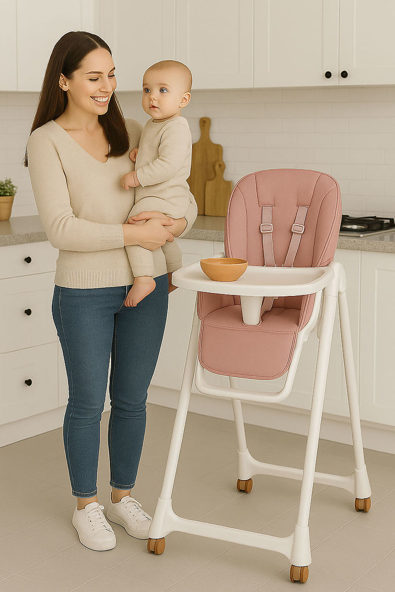 Stolica osim zanimljivog, modernog dizajna savršeno ispunjava svoju funkciju, osiguravajući sigurnu i udobnu poziciju tijekom hranjenja. Omogućuje maloj djeci jesti zajedno s odraslima za jednim stolom, zahvaljujući čemu već od prvih mjeseci dijete promatra i uči se pravilnom ponašanju.