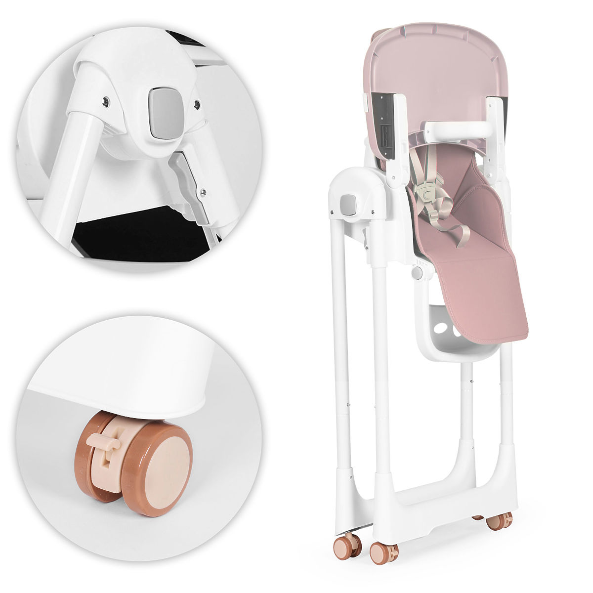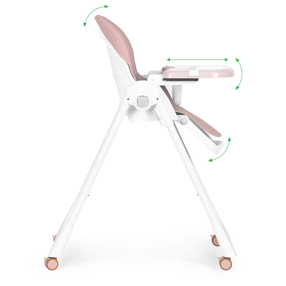VISOKO ILI NISKO SJEDALOSjedalo ima mogućnost promjene visine, zahvaljujući posebnim gumbima možete lako podići ili spustiti. Ako vaše dijete postaje samostalno i ne morate ga više pažljivo pratiti, niža stolica bit će idealna za njega.