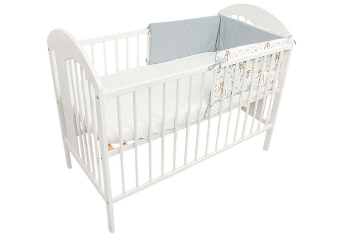 Ova lijepa mekana mantinela prikladna je za dječje krevete dimenzija 120 x 60 cm. Jedna strana mantinela je ukrašena prekrasnim motivom šumskih životinja, a druga strana je sive boje. Zahvaljujući univerzalnim bojama, savršeno će se uklopiti u sobu bilo koje vrste.