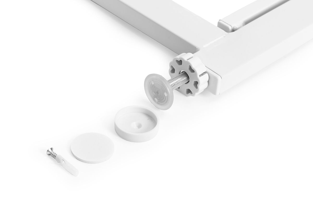JEDNOSTAVNA MONTAŽAMontaža barijere je izuzetno jednostavna i ne zahtijeva upotrebu alata niti bušenje rupa u zidovima ili okvirima vrata. Zahvaljujući 4-točkovnom sustavu pričvršćivanja pritiskom, barijera stabilno stoji na mjestu bez oštećenja površina. Osim toga, priložene zaštitne podloge štite zidove i pod od mogućih ogrebotina, osiguravajući estetski izgled prostorija.