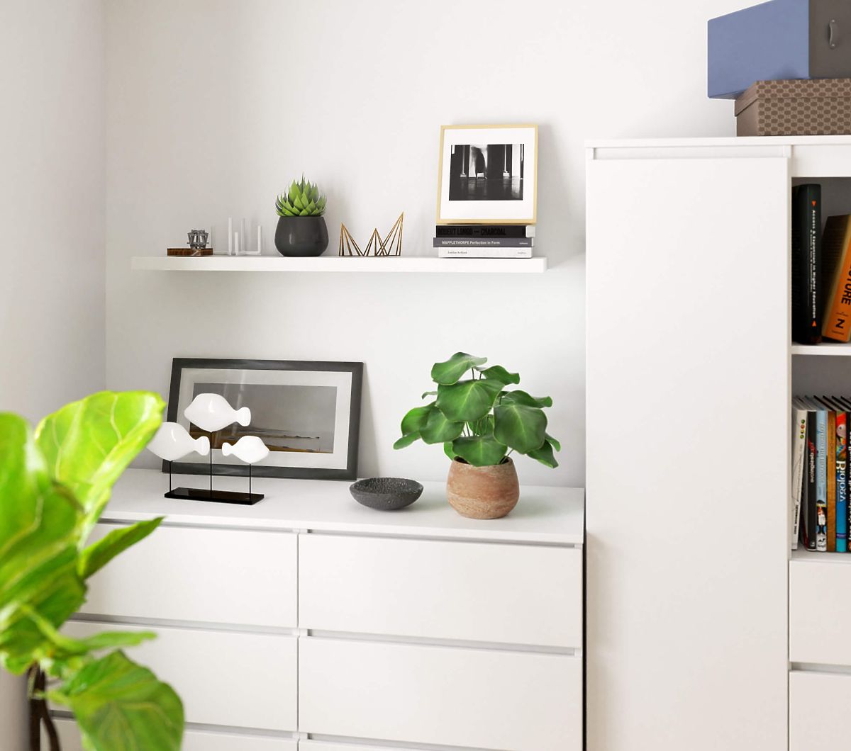 Bijela polica od laminirane ploče za svaki interijer. .. više