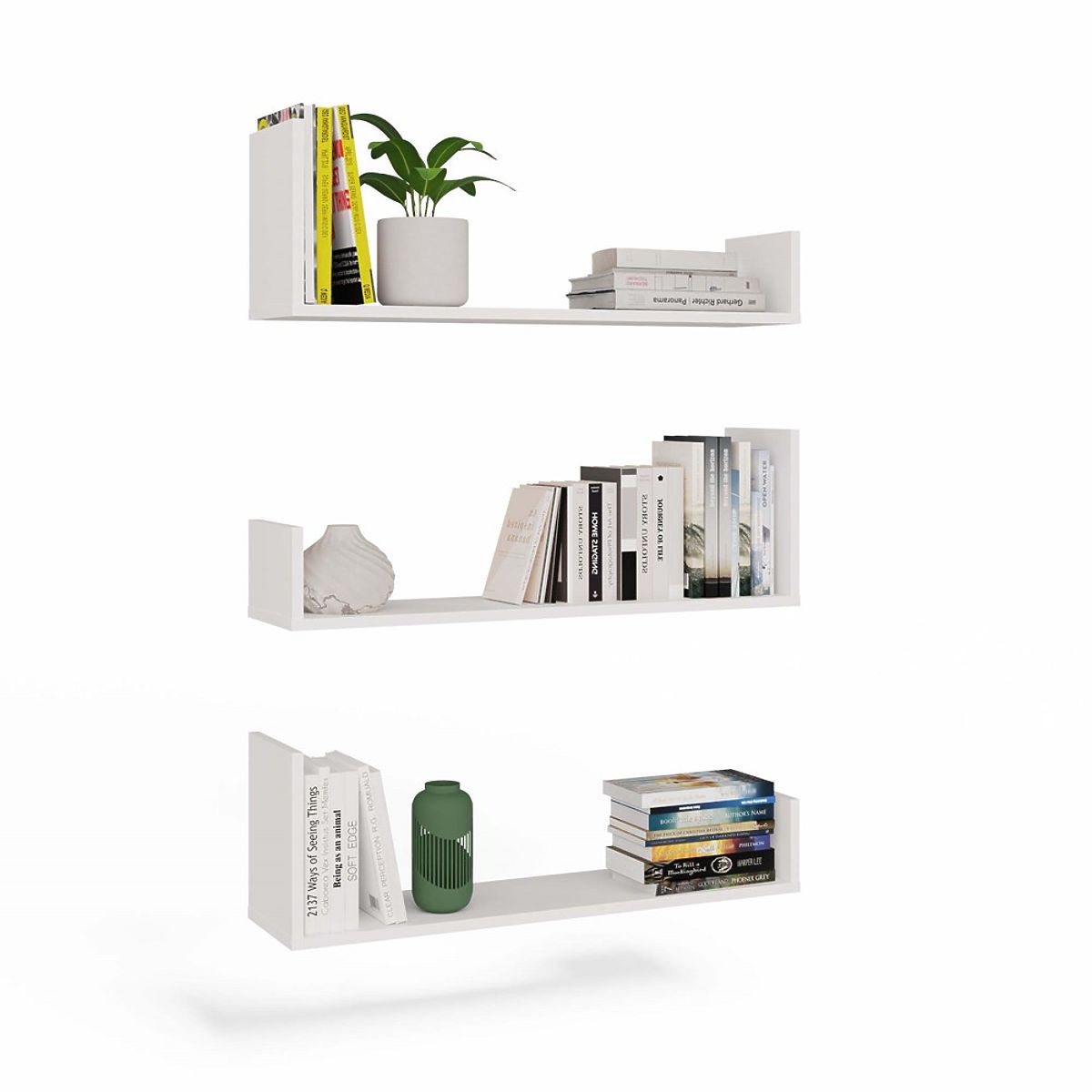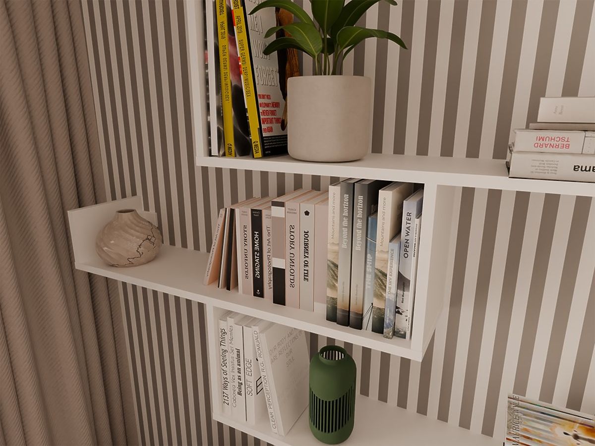 Zahvaljujući promišljenoj konstrukciji i praktičnim bočnim zidovima, police su idealne za pohranu knjiga, okvira, biljaka i dekorativnih sitnica. Svaka polica ima estetske pričvrsne elemente i može biti obješena zasebno ili kao cjelina – prema vašoj zamisli.