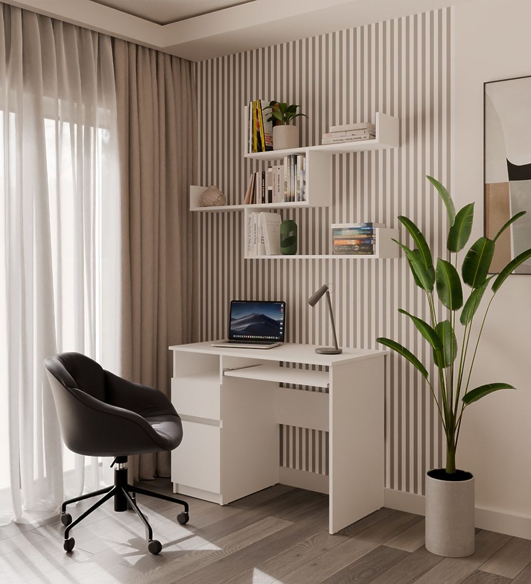 Tražite praktičan i istovremeno stilski dodatak na zid? Police KOBI u bijeloj boji su minimalističko rješenje koje donosi lakoću i modernost u vaš interijer. Sastoje se od tri zasebna segmenta koje možete objesiti u različitim konfiguracijama – horizontalno, vertikalno ili asimetrično – i stvoriti jedinstveni aranžman prilagođen vašem prostoru.