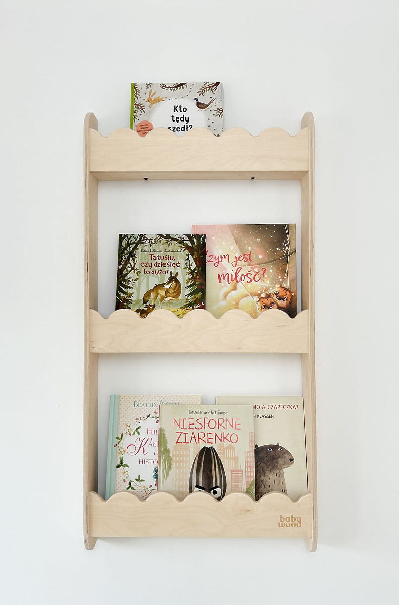 Zidna polica WAVE M u prirodnoj boji je praktična i dekorativna knjižnica za zid, koja pomaže održati red u dječjoj sobi, a da ne zauzima prostor na podu. Idealna je za knjige, igračke, dekoracije ili sitne predmete vašeg djeteta. Montaža na zid omogućuje slobodan pod za igru i druge aktivnosti. Prirodni izgled i kvalitetna izrada police daju dječjoj sobi ugodan akcent. Zaobljeni rubovi i glatke površine osiguravaju sigurnu upotrebu čak i za malu djecu.