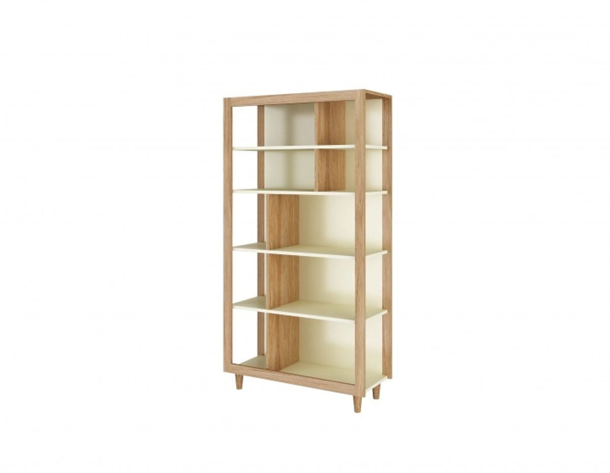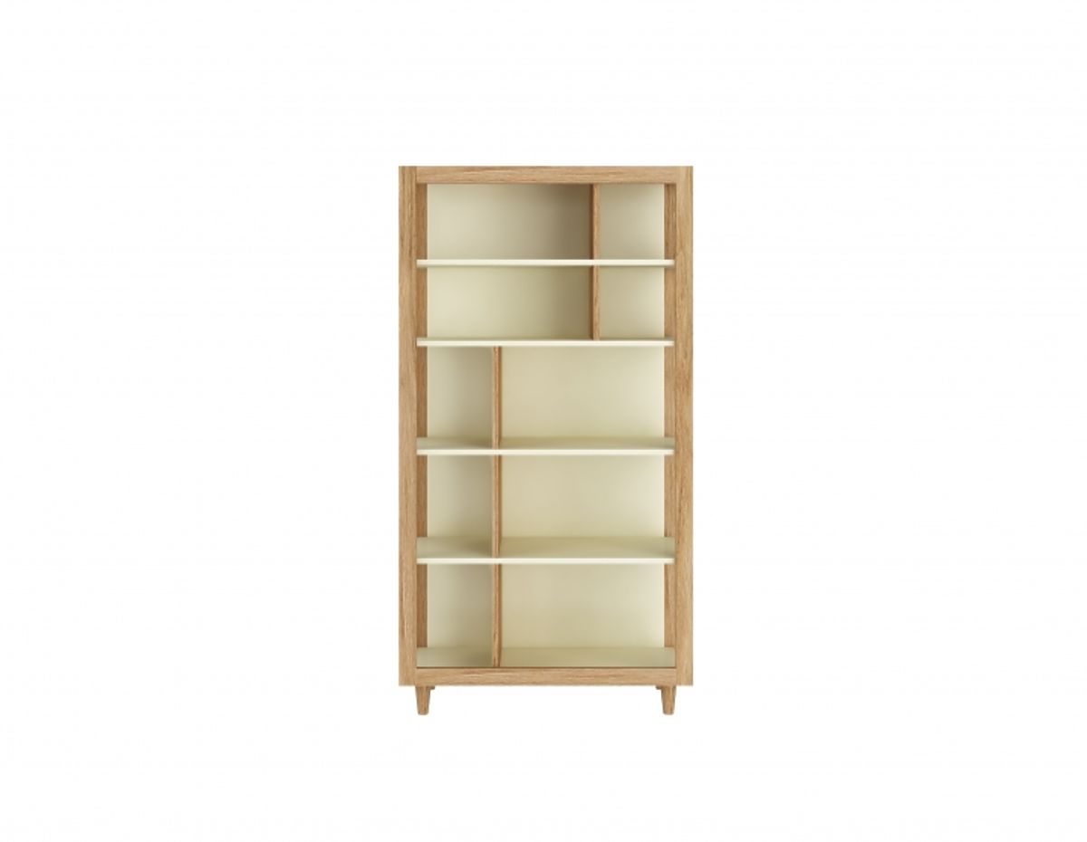 Regál využijete jak pro uložení věcí, tak i jako moderní prvek ve svém interiéru. Dvoubarevná kombinace jemné krémové barvy a dubu působí velmi příjemně a vnáší do pokoje eleganci a styl.