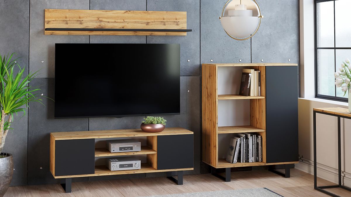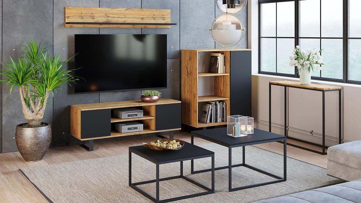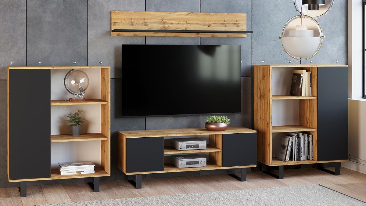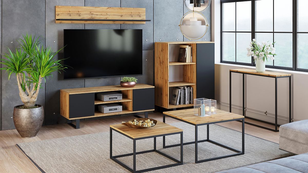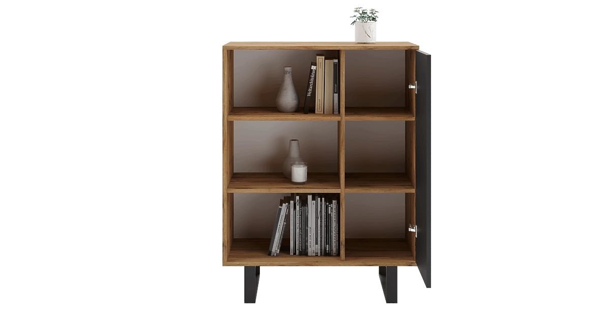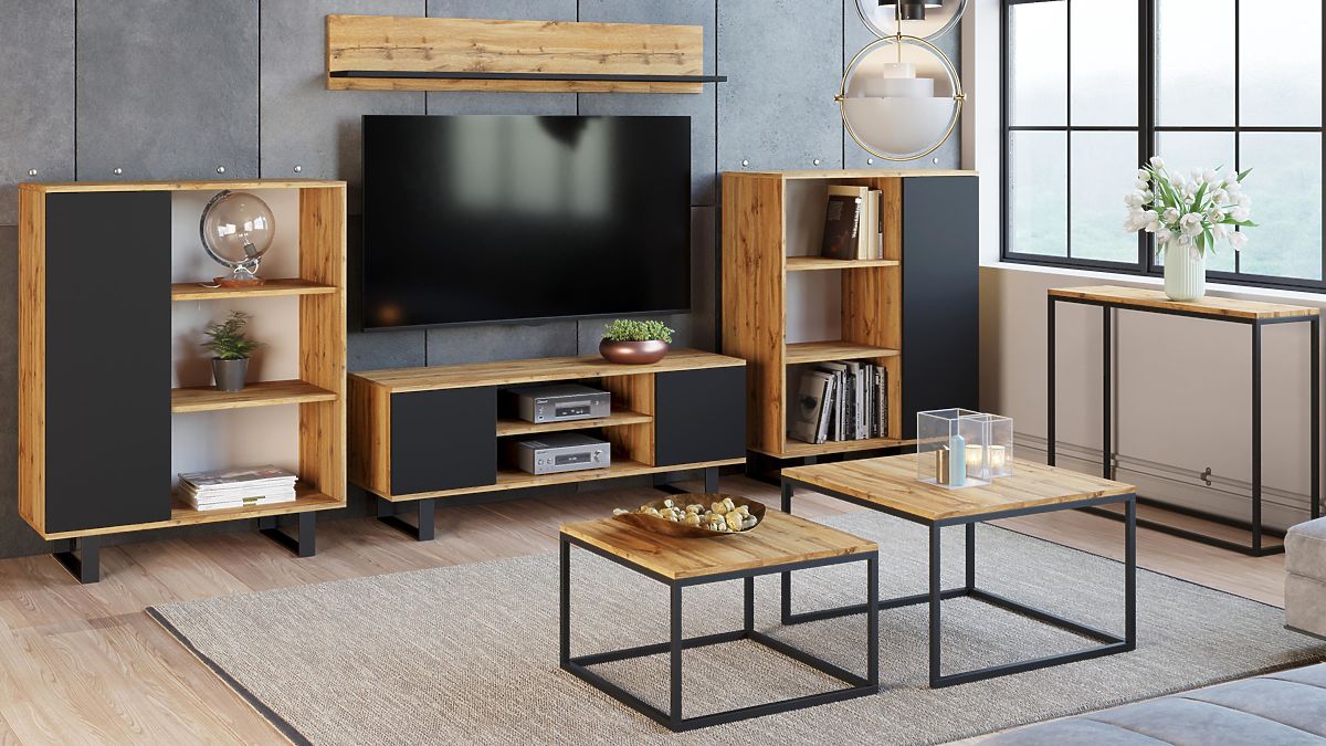 Ormar FONDI je izuzetno funkcionalan namještaj za vaš dnevni boravak, koji spaja jednostavnost s privlačnim izgledom inspiriranim loft stilom. Zahvaljujući minimalističkim oblicima i sirovim materijalima, kao što su metalni elementi i drvo, ormar unosi u interijer jedinstvenu atmosferu i karakter. To je idealno rješenje za one koji cijene praktičnost i moderan dizajn u jednom. Ormar FONDI je i funkcionalan i estetski, nudi prostor za pohranu i mogućnost izlaganja omiljenih dekoracija.