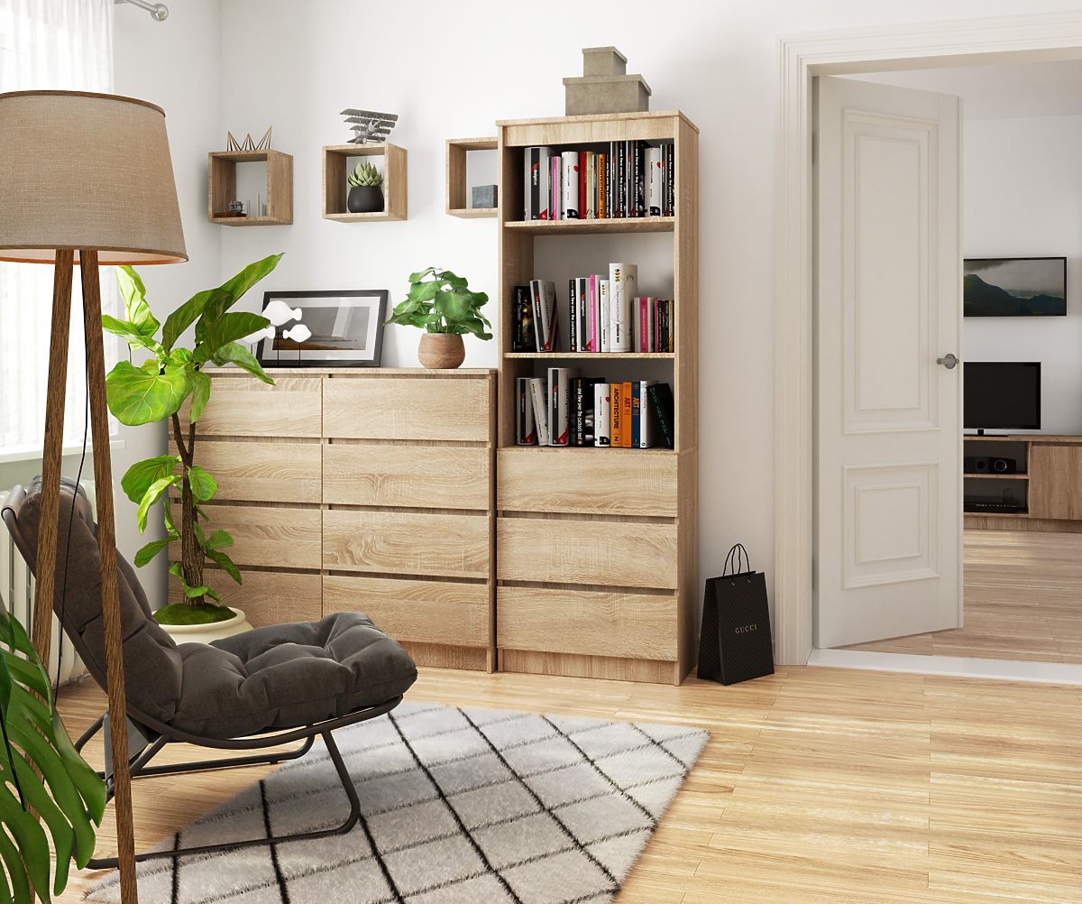 Kancelarijski regal CLP je praktičan i univerzalan komad namještaja koji se uklapa kako u ured, tako i u svaki dom. Održavan u klasičnoj nijansi hrasta sonoma, savršeno se uklapa s drugim namještajem u ovoj boji, što omogućuje stvaranje vrlo učinkovitih sastava. Regal je izrađen od laminirane ploče debljine 16 mm. To je trajan i otporan materijal koji se odlikuje visokom otpornošću na habanje. Rubovi su dodatno zaštićeni ABS rubom, tako da će namještaj i dalje izgledati dobro, čak i uz vrlo intenzivnu svakodnevnu upotrebu. Regal je opremljen s dvije police na koje se mogu postaviti predmeti koje želimo izložiti ili imati pri ruci. Tri duboke ladice savršeno su prikladne za pohranu manje reprezentativnih stvari i sitnica. Cijeli komad djeluje vrlo stilski i moderno. Univerzalni stil omogućuje jednostavno uklapanje u interijere različitih namjena, uređene u različitim stilovima.