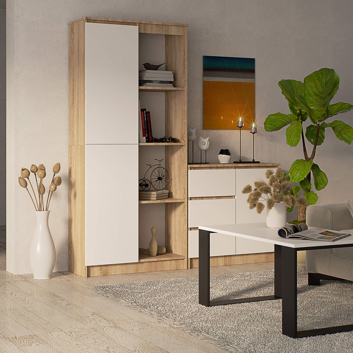 Regal s 8 polica i jednim vratima, boje hrast sonoma i bijela. .. više