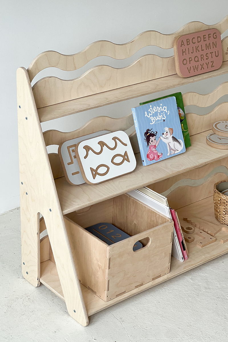 Regal WAVE L u prirodnoj boji je praktična i dekorativna polica za knjige, koja pomaže održati red u dječjoj sobi i istovremeno podržava samostalnost djeteta. Zahvaljujući preglednim policama, dijete ima jednostavan pristup knjigama, igračkama i sitnim predmetima. Police dubine 4 cm idealne su za manje knjige i dekoracije, dok valovite prednje letvice dodaju regalu nježan dizajnerski detalj. Stabilni materijali i sigurna izvedba osiguravaju dugovječnost i sigurno korištenje čak i za malu djecu.