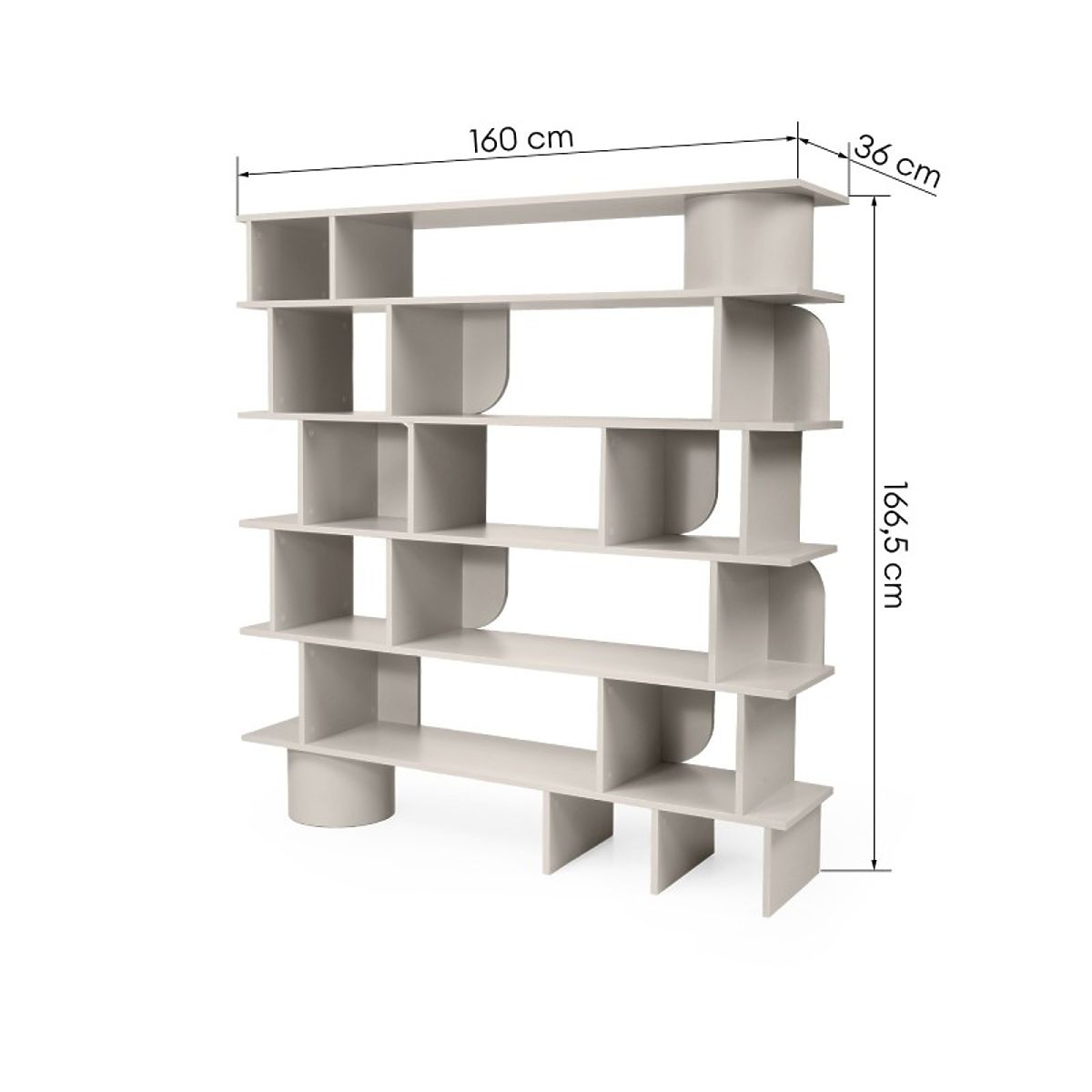 Regal Rangali je idealna kombinacija funkcionalnosti i izvanrednog dizajna. Kašmir nijansa i šest čvrstih polica s dekorativnim lukovima omogućuju vam estetsko uređenje vašeg prostora i dodavanje modernog karaktera.
