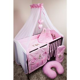 Povlečení je vyrobeno ze 100% bavlny. Výplň zavinovačky je polyester. Kojící polštář má silikonovou výplň.