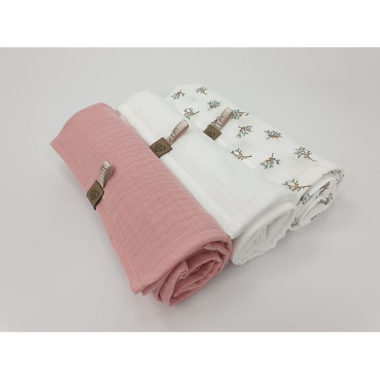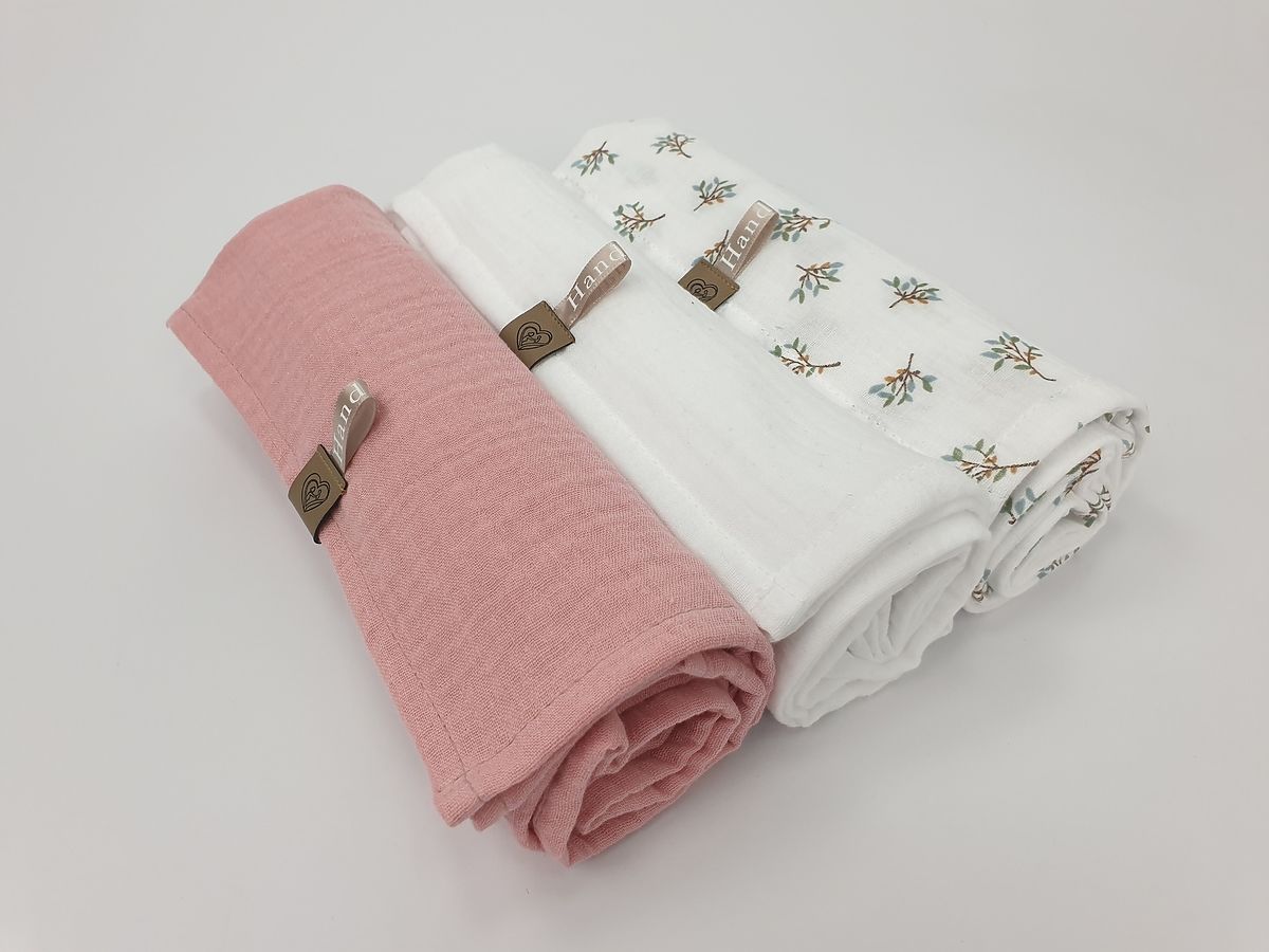 Ovaj set od tri muslinske pelene u ružičastoj nijansi savršen je dodatak svakom outfitu. Pelene imaju mnogo namjena. Idealni su pomagači pri hranjenju beba. Postavljanjem bebine glavice na pelenu u krevetiću, kolicima ili autosjedalici osiguravate miran i ugodan san.