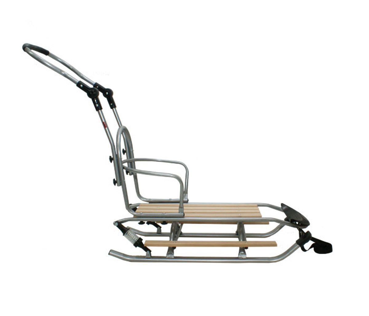 Dětské sáňky jsou vyrobeny nejmodernější technologií a mají speciální odpružení (patentované tlumiče), pevnou ocelovou konstrukci a madlo, které je možné výškově regulovat. Madlo i opěrku je možné sundat.
