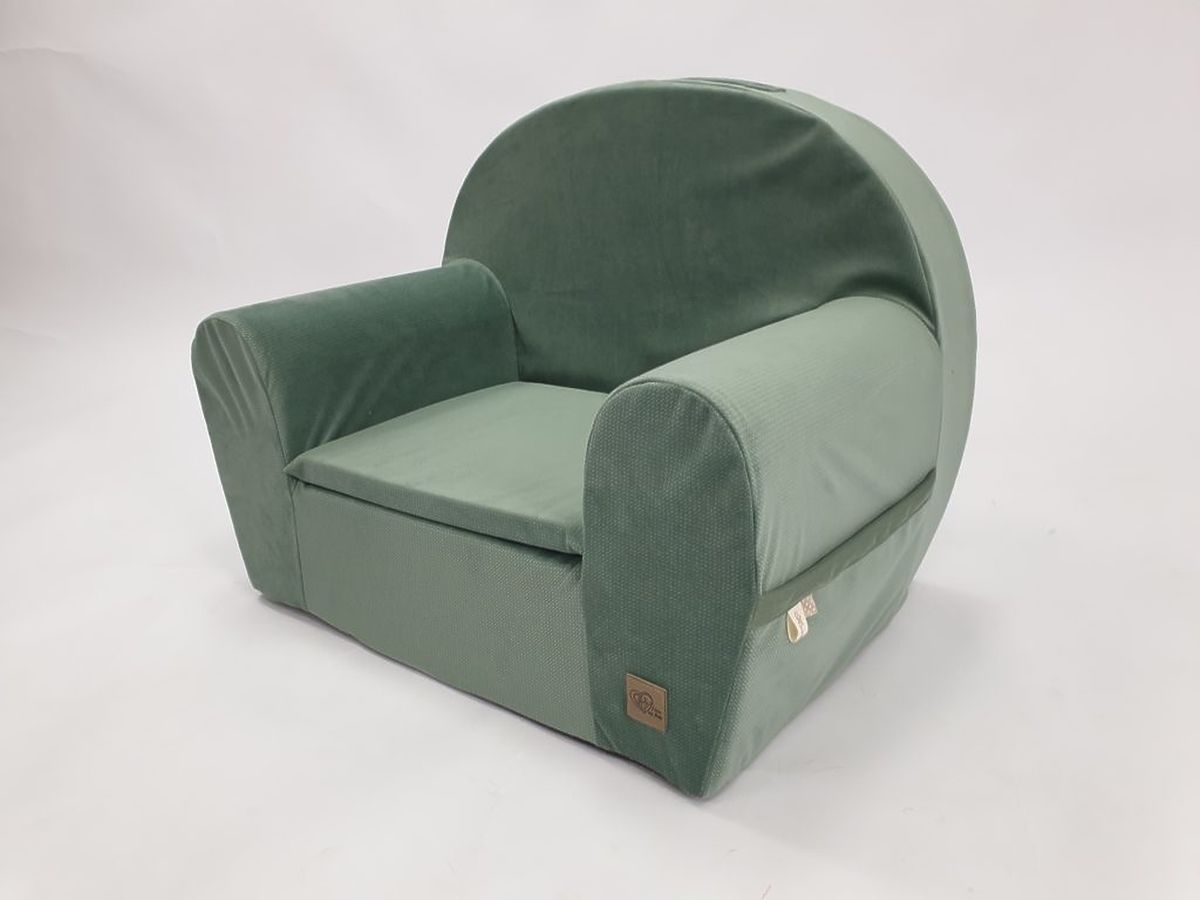 Prekrasan zelen Velvet naslonjač za djecu koja već mogu samostalno sjediti. Osim lijepog izgleda, naslonjač je izuzetno funkcionalan. Uklonjiva navlaka omogućuje jednostavno pranje u bilo kojem trenutku. Ima bočni džep koji je savršen za skrivanje dječjeg blaga ili omiljene dječje knjige.
