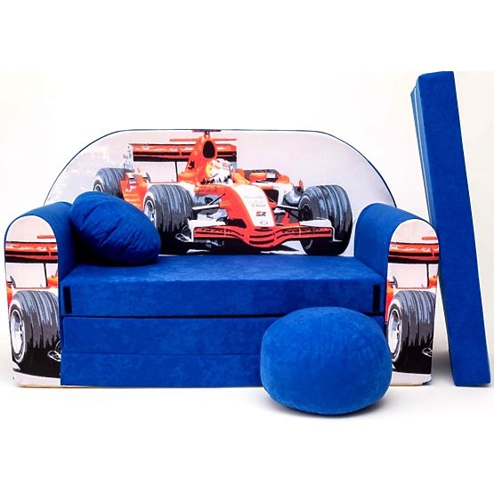Svaki će dječak cijeniti kauč s motivom formule. Ovaj kauč je također vrlo kvalitetan i ugodan na dodir. Kao da mazite dlaku psa ili mačke. To je zbog dodatka velurau u pamuk.
