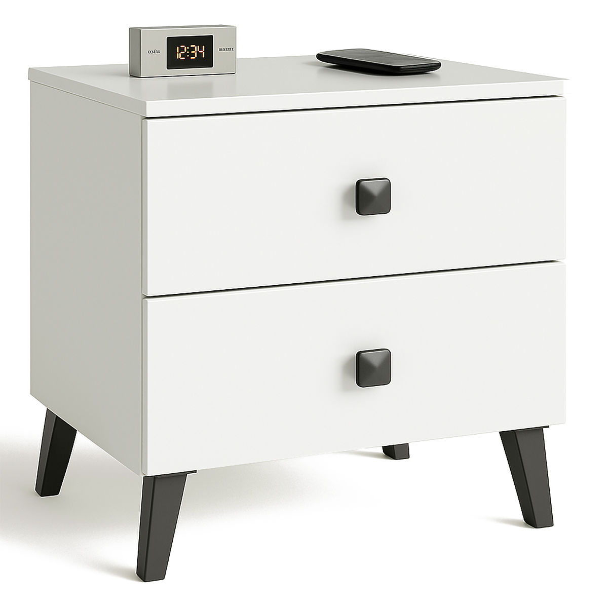 Noćni ormarić MOBI K02 s 2 ladice u bijeloj i crnoj boji. .. više