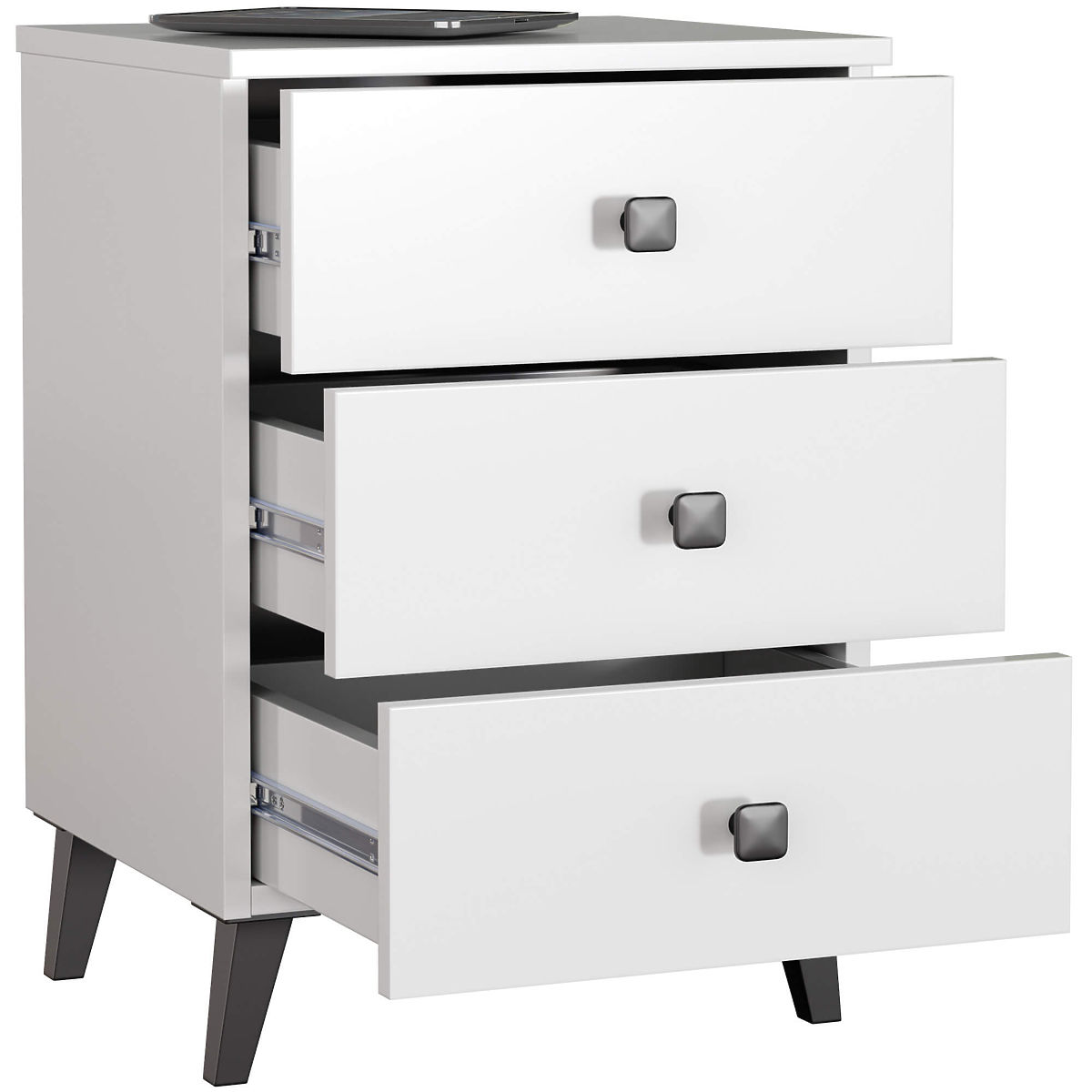 NOĆNI ORMARIĆ MOBI 3 LADICE BIJELI CRNI