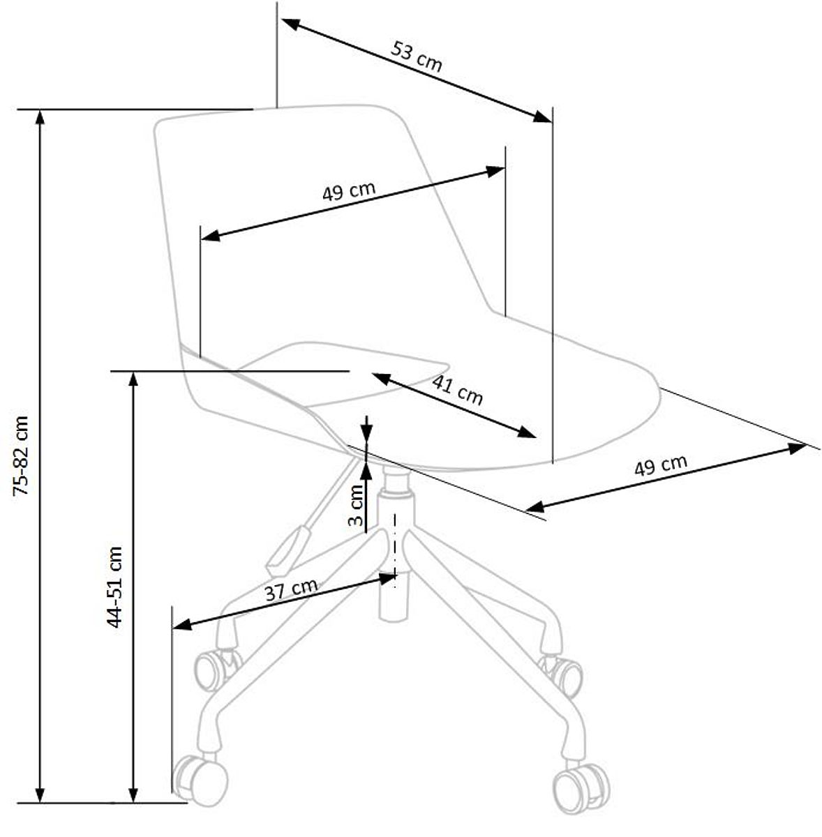 Stolica je opremljena osnovnim mehanizmom koji omogućuje prilagodbu visine sjedala prema potrebama korisnika, što ga čini pogodnim i za dječje sobe i za urede.