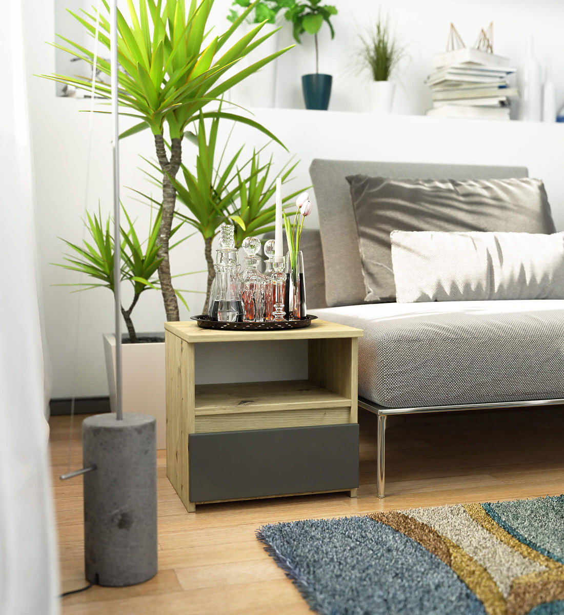 Noćni ormarići su popularan tip namještaja koji se postavlja pored kreveta. Na njegovoj ploči najčešće se nalazi svjetiljka, dok se unutra nalaze predmeti koji olakšavaju odmor i san. Osobe koje traže elegantnu komodu trebale bi obratiti pažnju na noćni ormarić CL1 40 cm u boji hrast artisan grafit siva. Lijepo će se uklopiti u svaku spavaću sobu. Također se može postaviti u dječju sobu.