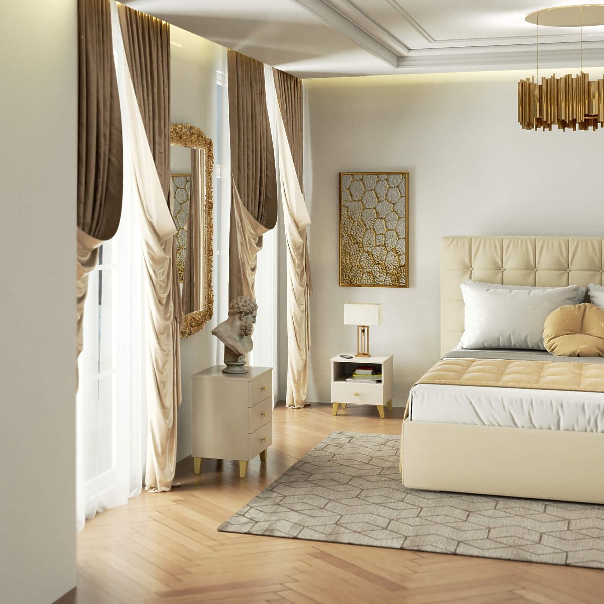 - moderan izgled - namještaj je jednostavan u obliku, privlači zanimljivom kombinacijom boja kašmira sa zlatom,