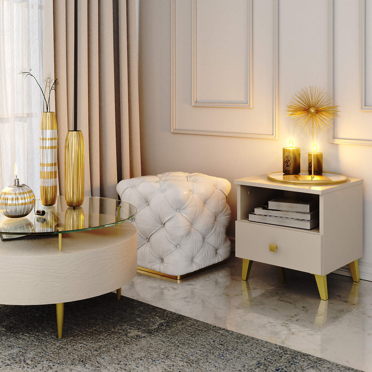 Noćni ormarić MOBI K01 s ladicom i policom u kašmir zlatnoj boji. .. više