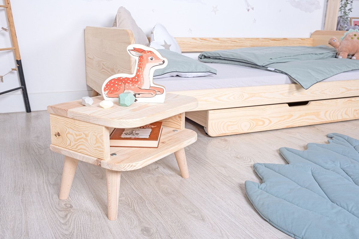 Elegantan noćni ormarić iz kolekcije Ourbaby NELL od prirodne borovine bit će savršen dodatak dječjoj sobi. Njegov prirodan izgled je šarmantan i ima čvrste noge od bukve koje donose ugodan dodir prirode. Ovaj noćni ormarić nudi više od samog prostora za pohranu. Uz praktičnu policu za odlaganje, pruža dovoljno prostora za knjige, satove, mobitele i druge osobne stvari. Noge od bukve ne samo da osiguravaju stabilnost i izdržljivost, već unose i prirodnu eleganciju u interijer.