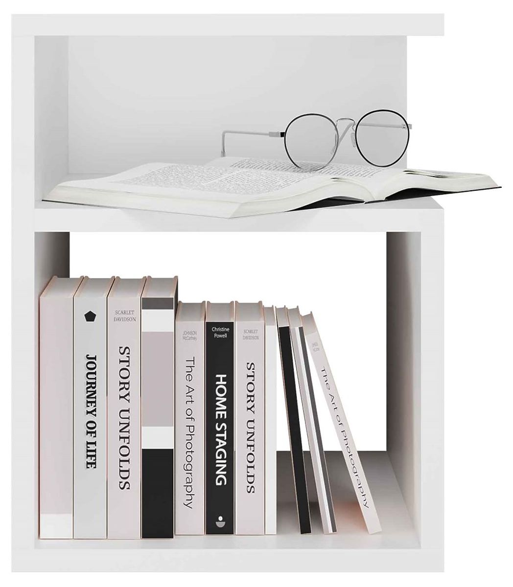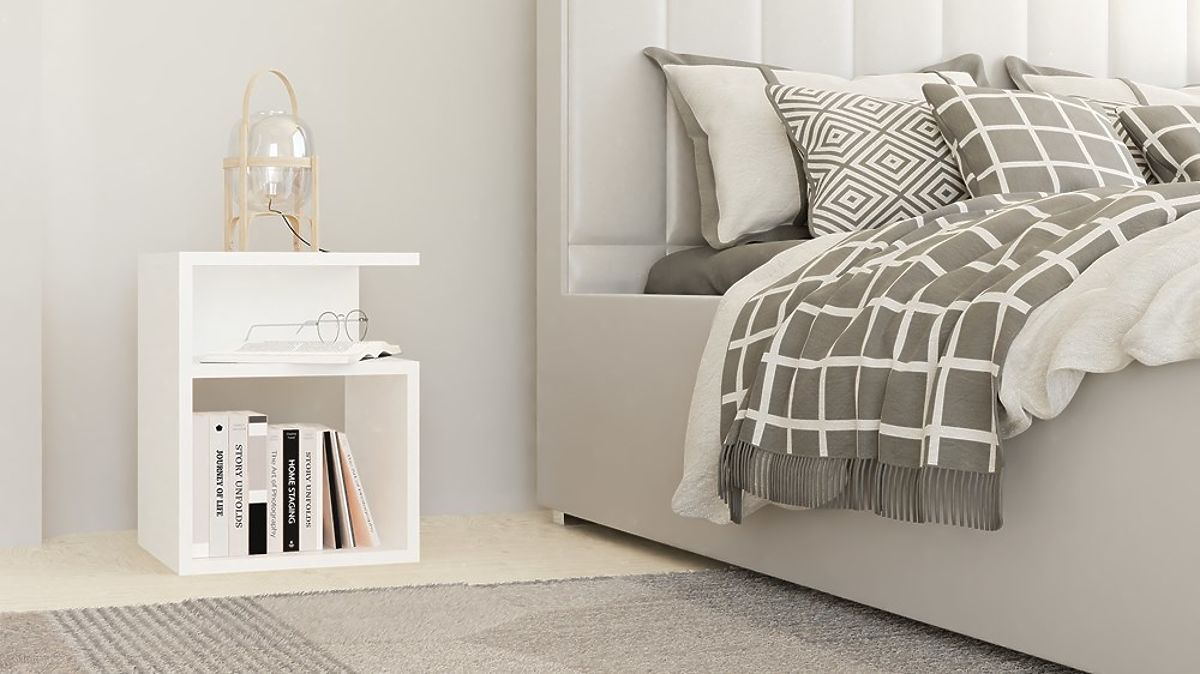 Moderan bijeli noćni ormarić s minimalističkim dizajnom. .. više