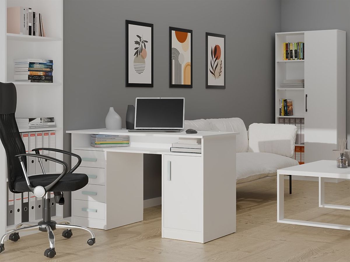 BIURKO ADA BIJELO 125 cm 4 Ladice Ormarić Police za Ured Soba za Laptop