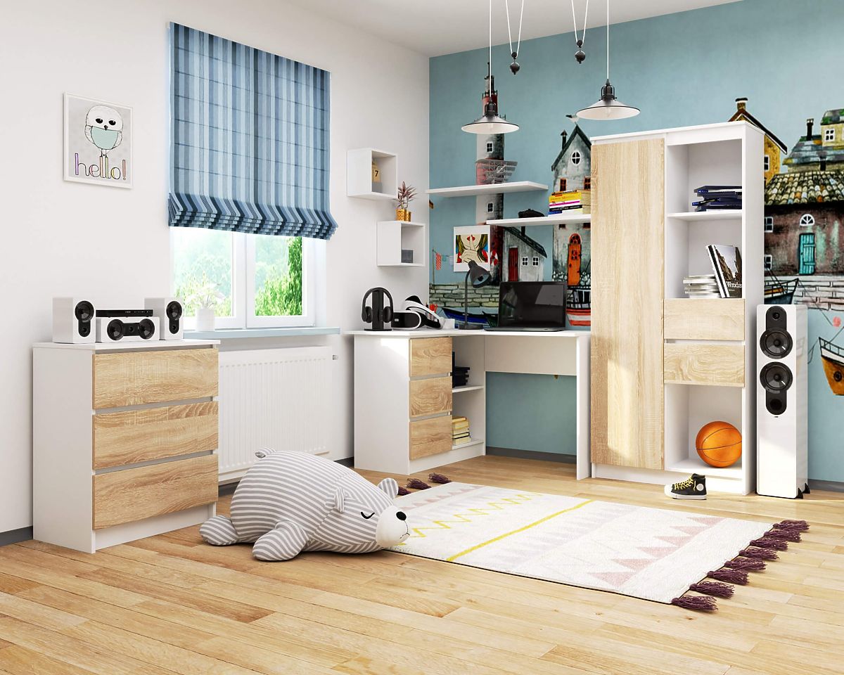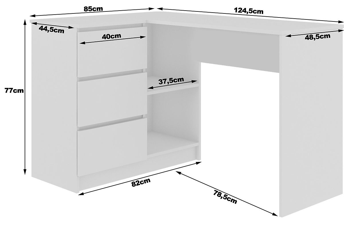 Banaby.hr » Dječji namještaj / Stolovi / Pisaći stolovi / KUTNI PISAĆI STOL B16 124 cm LIJEVI 3 LADICE PK BIJELA / SONOMA