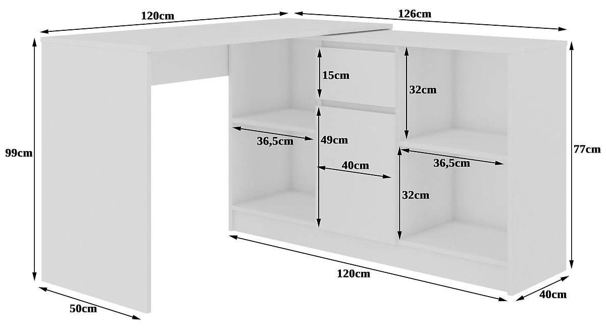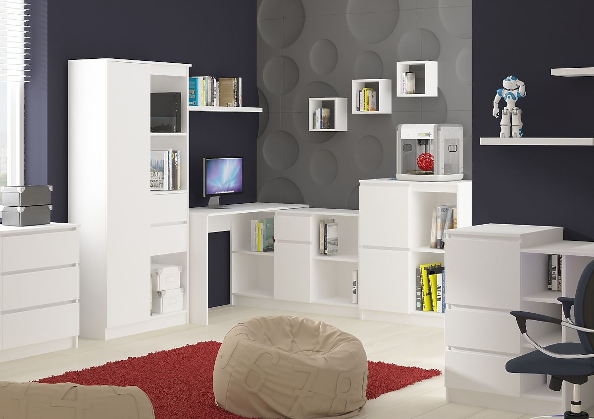 Inovativno rješenje. Pisaći stol se može kombinirati s komodom i vrlo lako dobivamo kutni pisaći stol. Mogućnost kupnje komode i pisaćeg stola zasebno je još jedna značajka našeg namještaja. Namještaj je univerzalan za desnoruke i lijevoruke korisnike, dovoljno je postaviti komodu na drugu stranu stola.