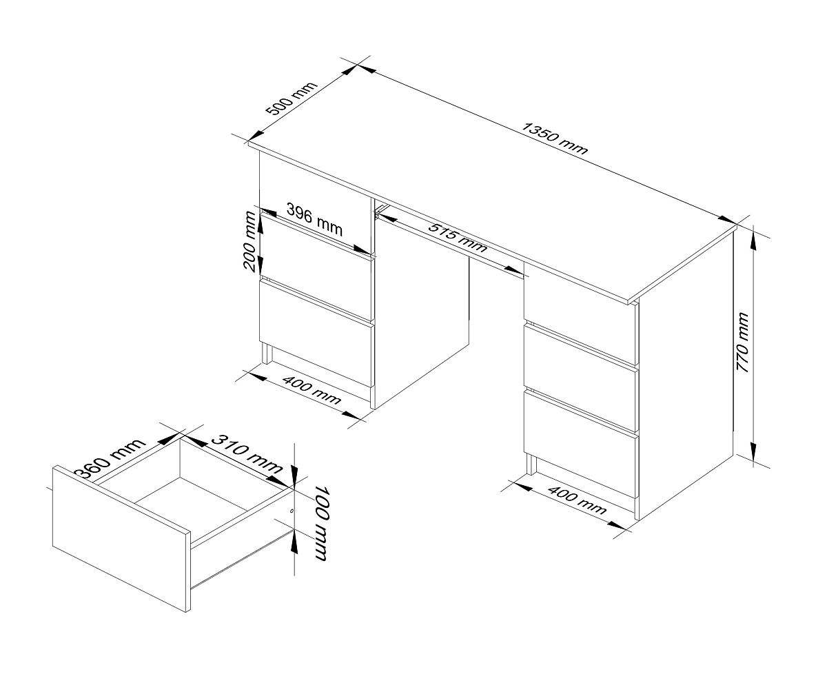 Pisaći stol A-11 s 6 ladica za ured i dom. .. više