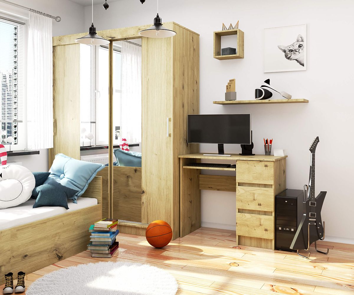 Računalni stol A-6 90 cm desni je proizvod koji kombinira funkcionalnost, visoku kvalitetu i bezvremenski izgled. Proizvod se može slobodno kombinirati s drugim elementima opreme dostupnim unutar iste kolekcije. Računalni stolovi u boji hrast artisan odlično se uklapaju kako u interijere uređene u klasičnom stilu, tako i u modernim aranžmanima. Jednostavan za korištenje i održavanje, bez sumnje će ispuniti očekivanja kupaca koji od odabranog namještaja očekuju praktičnu uporabu, jednostavnost i eleganciju.