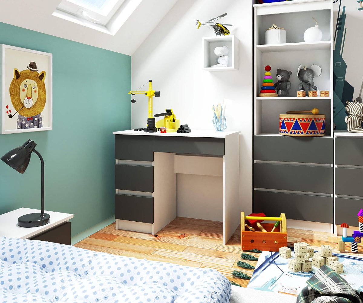 Računalni stolovi postaju neizostavan dio naših domova. Nije čudno kada provodimo toliko vremena pred ekranom računala, bilo da učimo ili radimo. Koji model namještaja odabrati? Zanimljiv izbor je računalni stol A-7 90 cm lijevi u bijeloj boji s prednjim površinama u grafitno sivoj. Odlično se uklapa u dnevni boravak, dječju sobu i ured.
