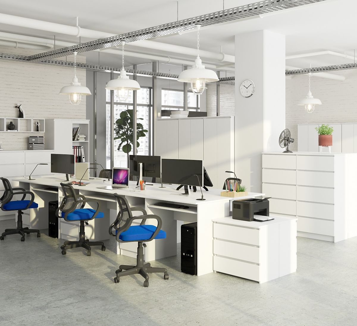 Bijeli samostojeći stol je moderno dizajniran namještaj koji se savršeno uklapa u suvremene aranžerske standarde. Privlači svojom jednostavnošću i elegancijom, u modernoj bijeloj boji. Stol sadrži tri prostrane ladice, otvorenu policu, izvlačnu policu za tipkovnicu i široku (135 centimetara) ploču. Samostojeći stol CLP savršeno odgovara kako za ured, tako i za kućni radni prostor. Ova ponuda sigurno će ispuniti očekivanja onih za koje je radna ploča najvažnija. Njena dubina je do 60 centimetara, što omogućuje udobno korištenje računala i drugih uredskih potrepština. Proizvod je također popularan kao gaming stol, gdje su prostor i udobnost korisnika tijekom dugog igranja vrlo važni.