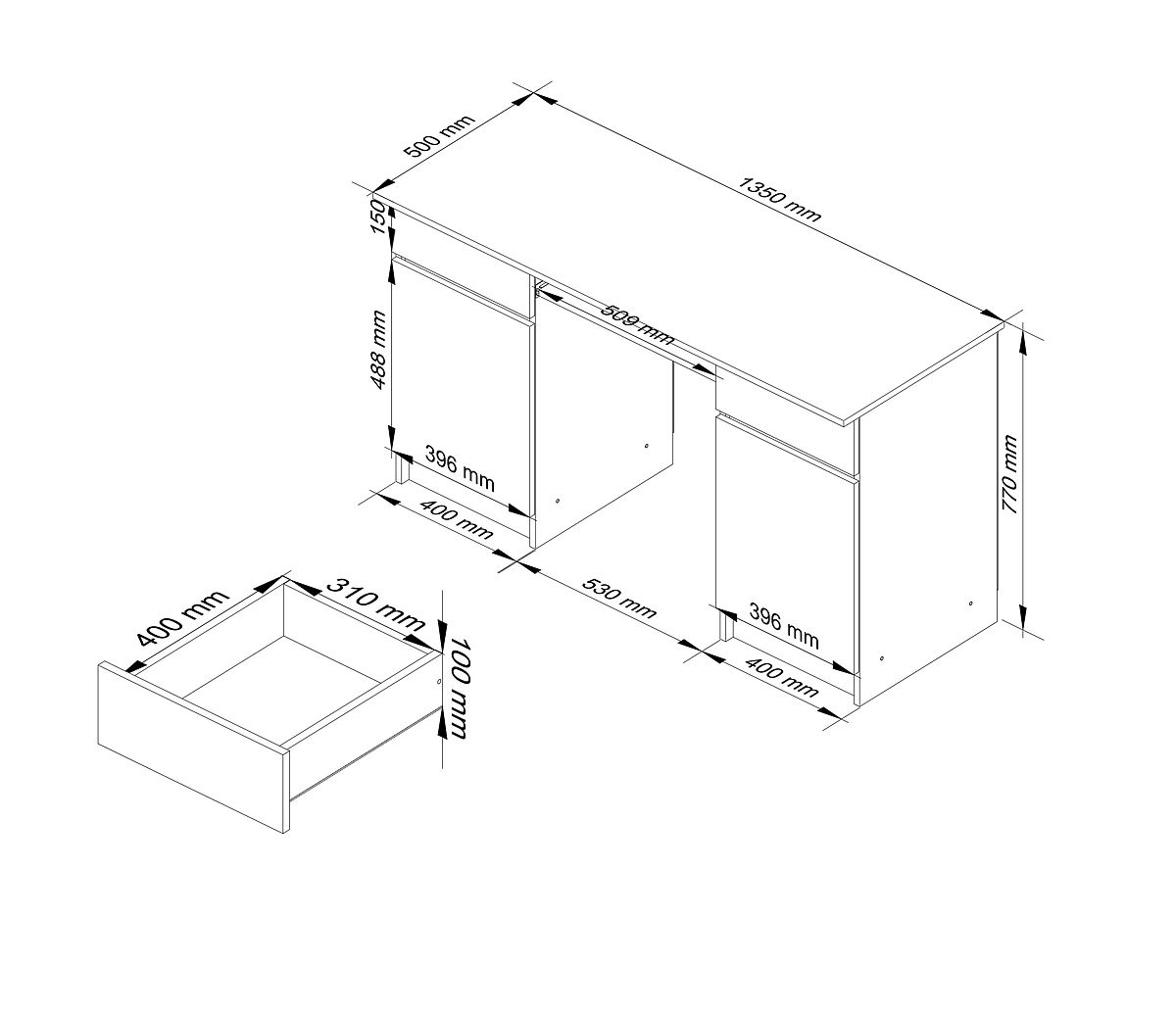 Pisaći stol izrađen od laminirane ploče debljine 16 mm otporne na habanje.