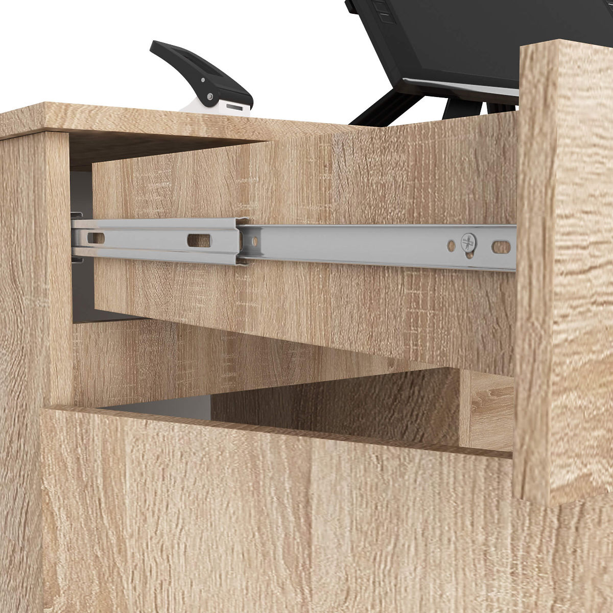 Stol je izrađen u boji hrasta sonoma, što ga čini vrlo elegantnim. Savršeno se uklapa u prostor gotovo svake sobe. Dizajniran je posebno za korisnike računala, stoga ima policu za tipkovnicu i slobodne ladice u kojima se mogu pohraniti važni predmeti poput kabela, diskova ili slušalica. Stol je namijenjen samostalnom sastavljanju. Međutim, zahvaljujući posebnom uputstvu, to je vrlo jednostavno. Jasno pokazuje kako to učiniti korak po korak. Iako je namještaj izrađen od visokokvalitetnih materijala i otporan je na oštećenja, nudimo našim kupcima 24-mjesečno jamstvo.