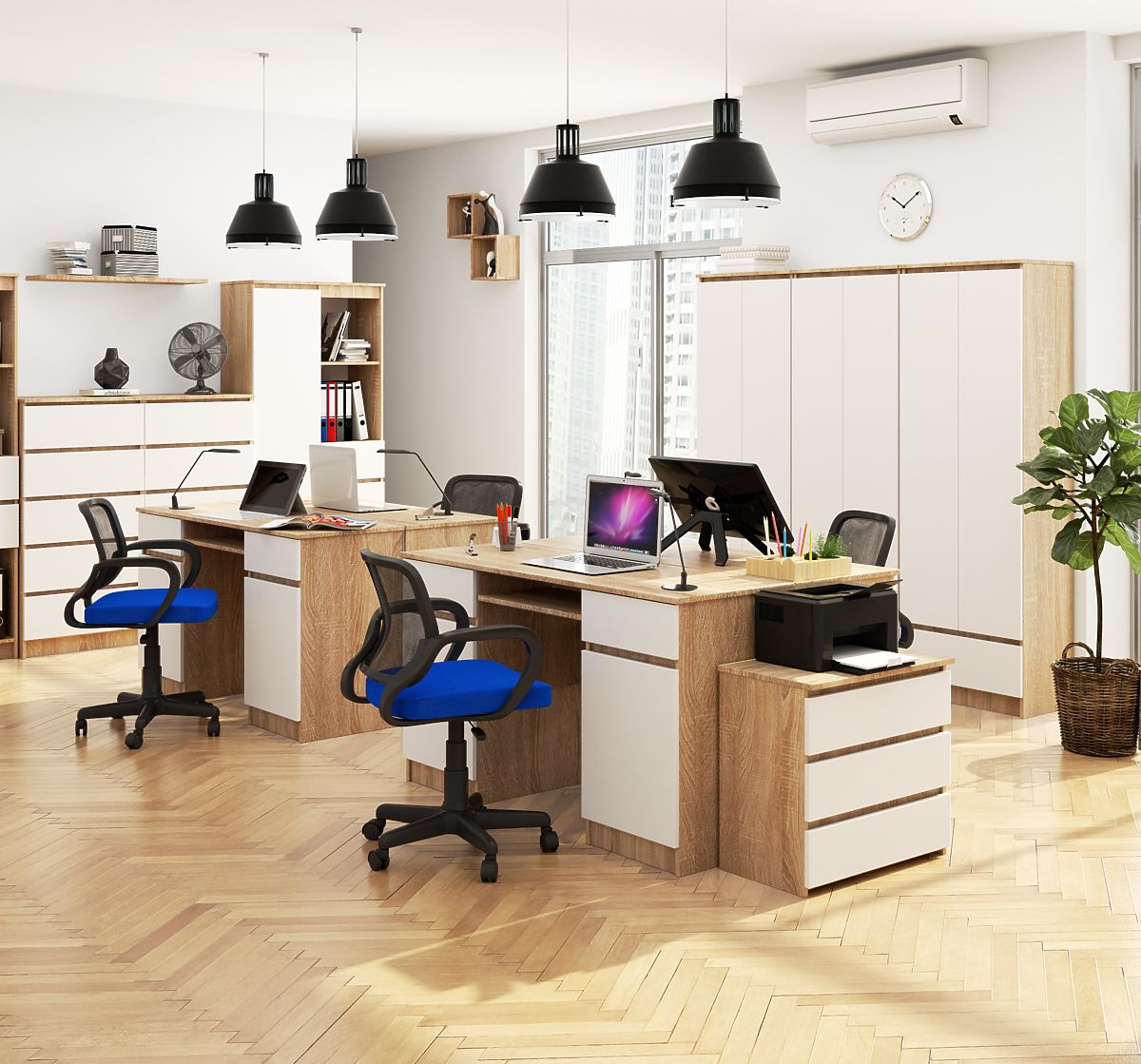 Računalni stol A5 dužine 135 centimetara, koji kombinira dvije moderne boje (hrast sonoma i bijela), namijenjen je kako za one koji uređuju ured, tako i za kućni radni prostor, dječju ili studentsku sobu.