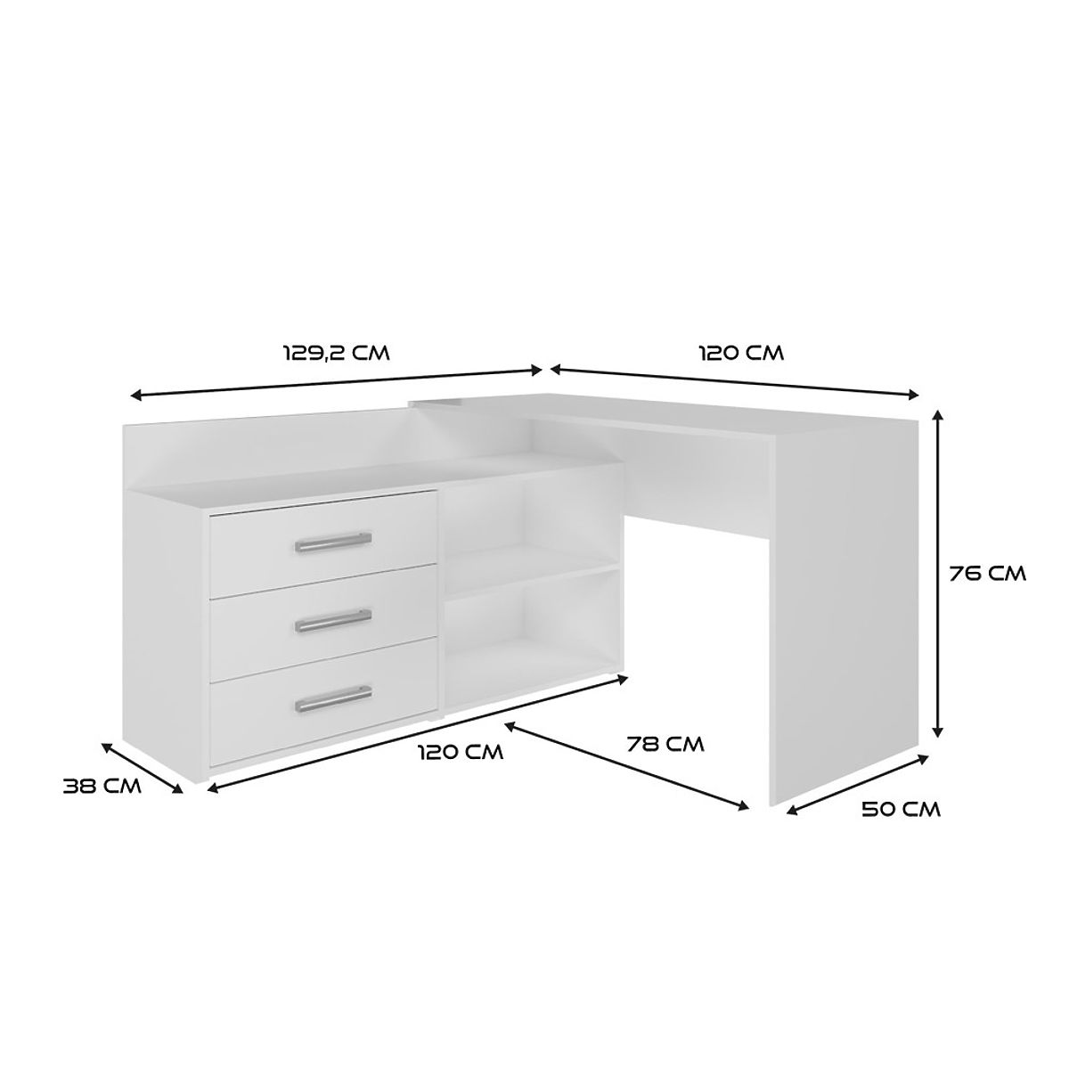 FUNKCIONALNI KUTNI PISAĆI STOL S 3 LADICE