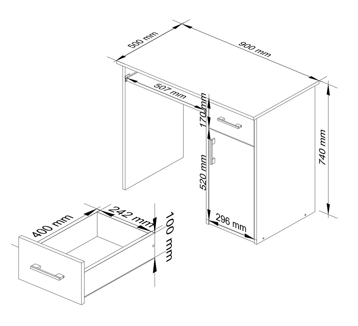 - Ladice i polica za tipkovnicu pomiču se na metalnim valjkastim vodilicama
