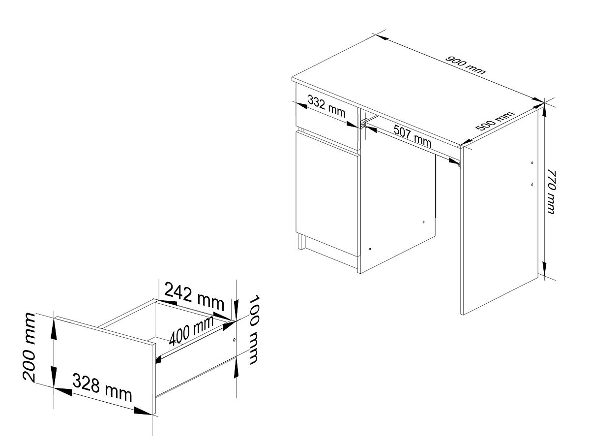 Stol Pixel je mali stol s dovoljno prostora za najvažnije školske potrepštine. Zahvaljujući vratima, može primiti mnogo bilježnica i knjiga. Stol je dužine 90 cm i savršeno se uklapa u male i srednje prostorije.