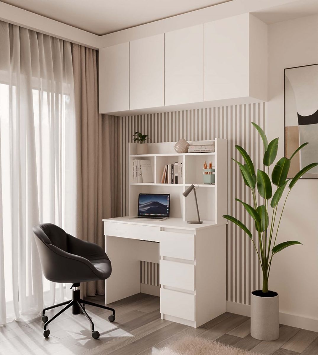 Banaby.hr » Dječji namještaj / Stolovi / Pisaći stolovi / Radni stol MIJAS s nadgradnjom Bijela Mat 4 Ladice 4 Police za Ured i Soba