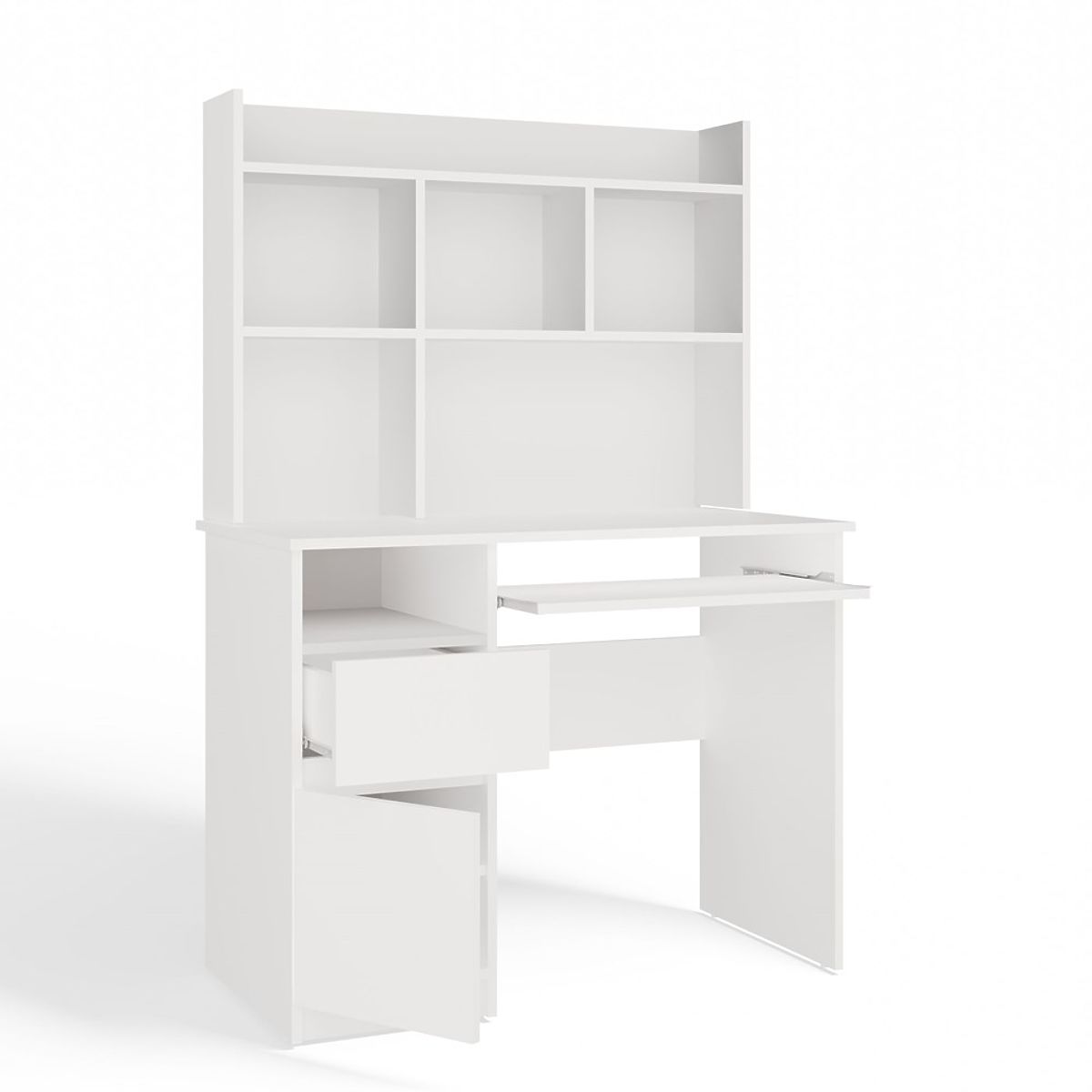 Moderni dizajn, mat bijela boja i praktičan raspored za pohranu čine ovaj komad namještaja savršenim za dječju, mladenačku sobu ili kućni ured.