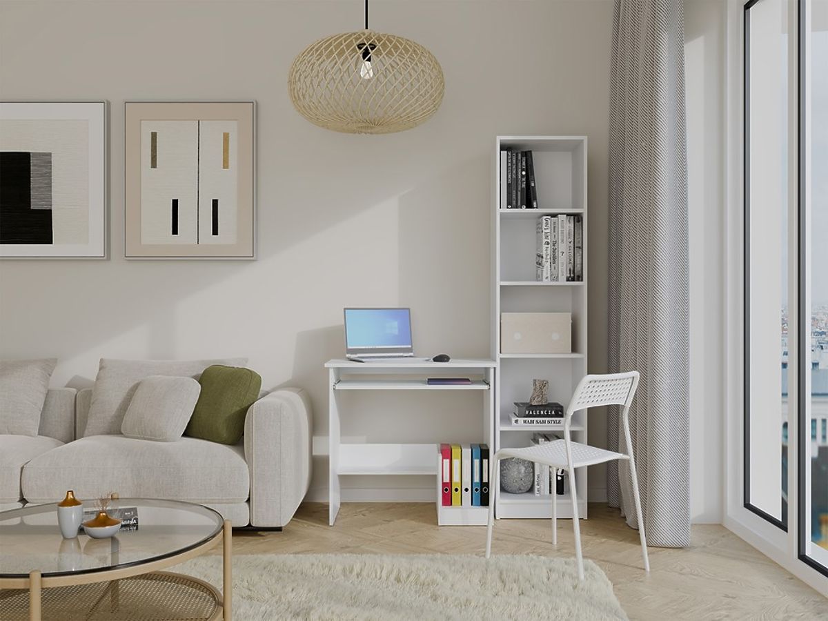 Radni stol ROSA je kompaktan i istovremeno vrlo funkcionalan namještaj koji se odlično uklapa u male prostore - bilo u dječjoj, studentskoj sobi ili kućnom uredu. Zahvaljujući minimalističkom dizajnu i mat bijeloj boji, stol se idealno uklapa u moderne interijere i optički povećava prostor.