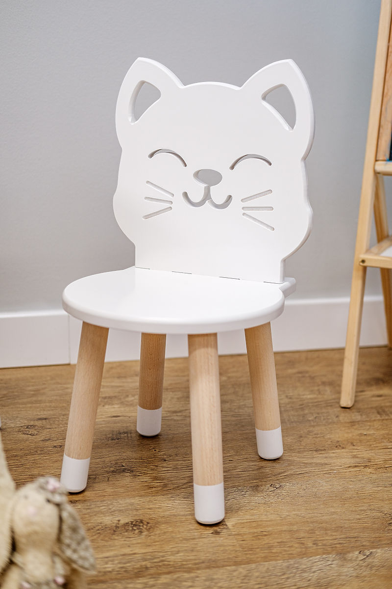 Prekrasna drvena stolica u obliku mačkice za svaku dječju sobu. .. više