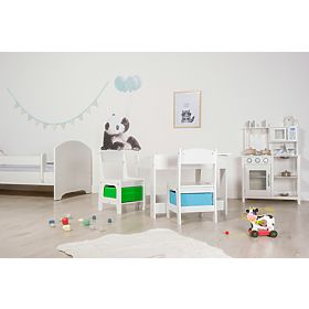 Prekrasan stol sa stolicama može se koristiti u svakoj dječjoj sobi. Nudi promjenljivu ploču stola koja se može promijeniti u crnu ploču za pisanje kredom. Praktične kutije u plavoj i zelenoj boji pružaju dodatni prostor za odlaganje.