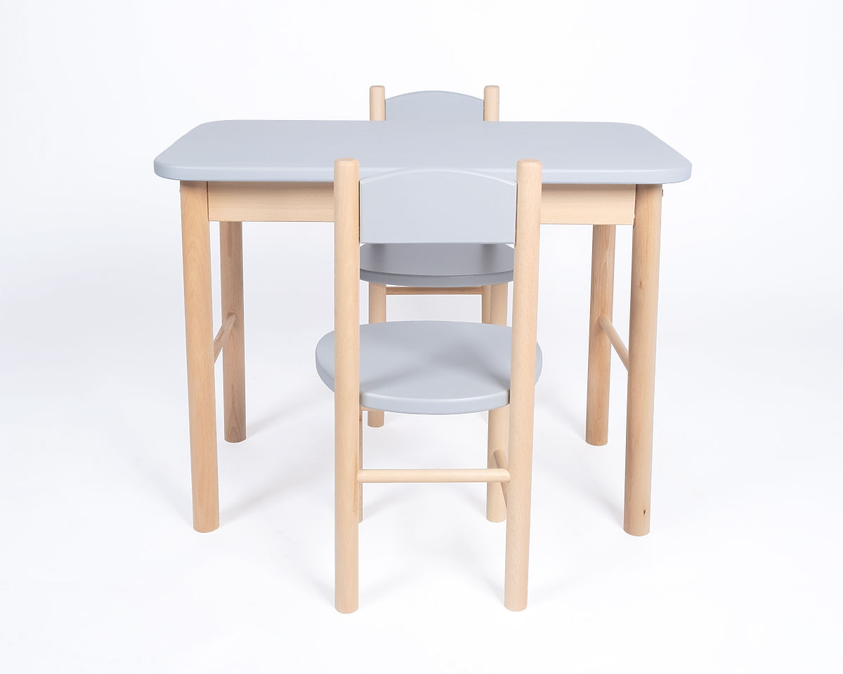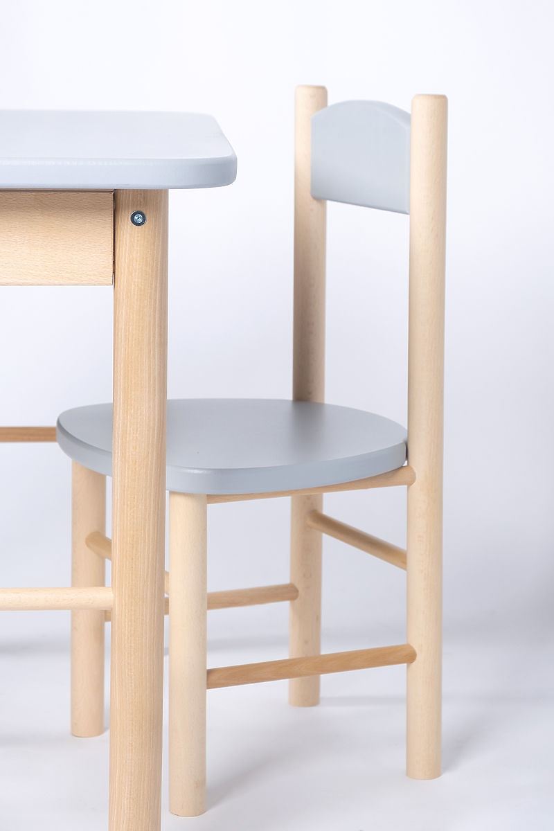 Dječji stol sa stolicom ne smije nedostajati ni u jednoj dječjoj sobi. Ovaj sivi drveni set stol i stolica bit će idealno mjesto za igru, slikanje, grickanje ili sjedenje s prijateljima.